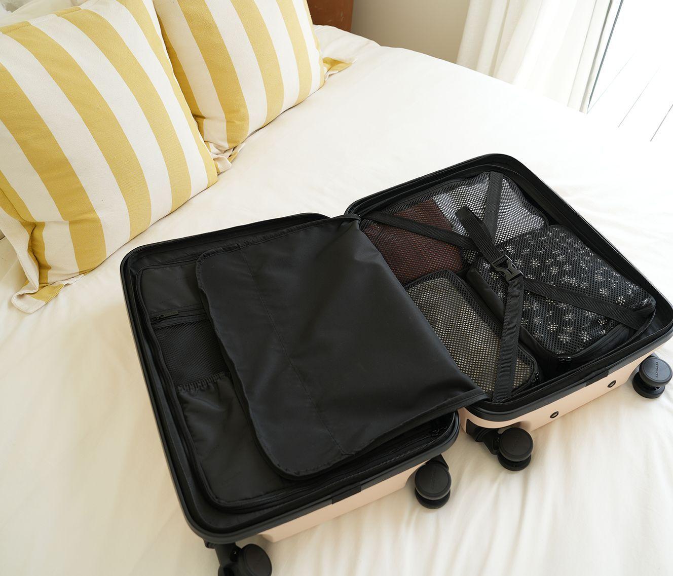 Packing has never looked so good. With two central dividers, dual compression straps, shoe pockets and interior mesh pockets, organising your belongings is a breeze. The Carry-On Luna is perfect for a 2-4 day trip. Combine with our packing cubes to maximise space even further (sold separately).